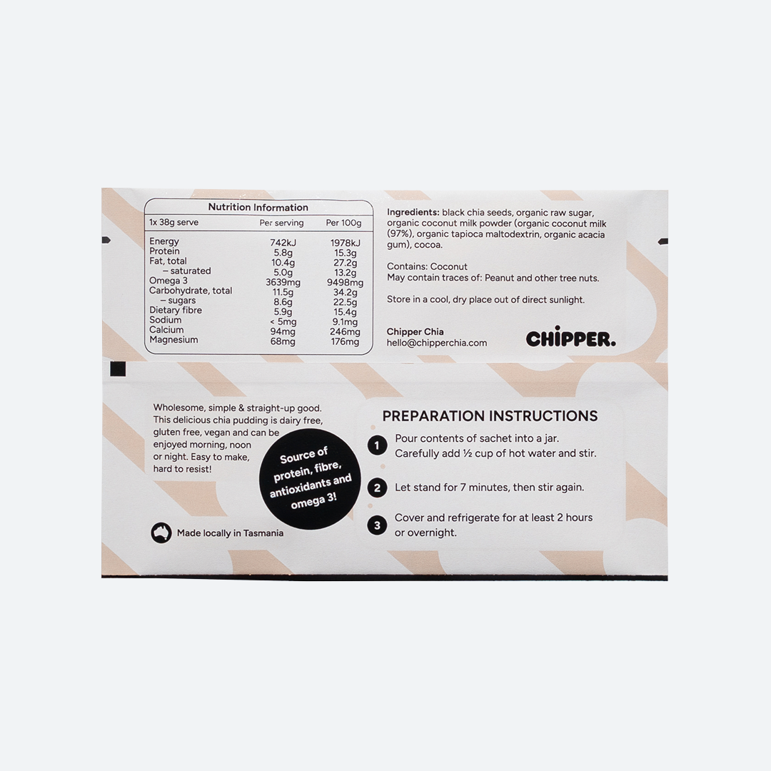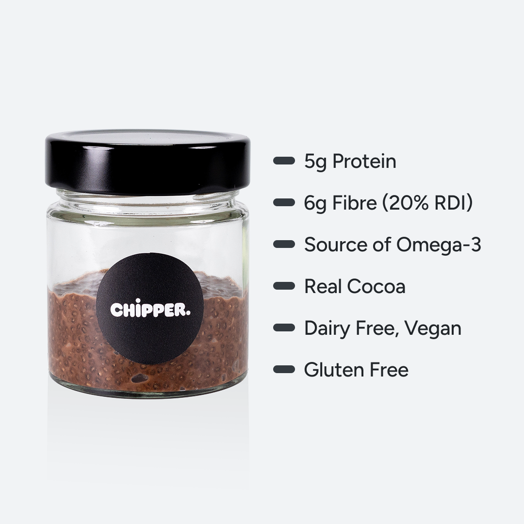Wholesome, simple & straight-up good. This chocolate chia pudding tastes like your favourite childhood dessert without "thickener 1422" hidden in the ingredients list. It's packed with fiber, antioxidants and Omega 3 so there's a legit excuse to eat chocolate any time of day.